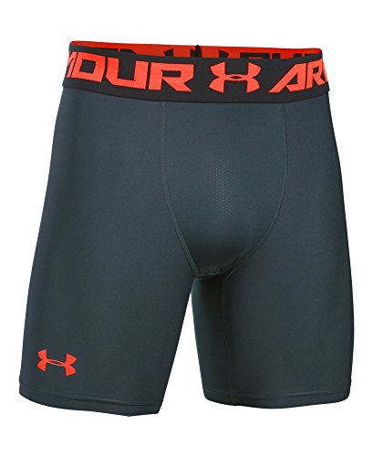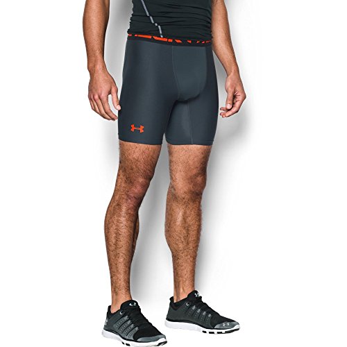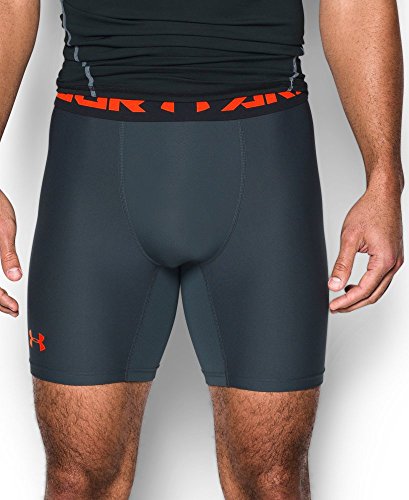 Under Armour Men's HeatGear Armour Mid Compression Shorts, Stealth Gray/Phoenix Fire, Small