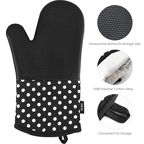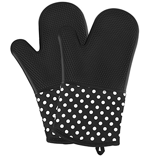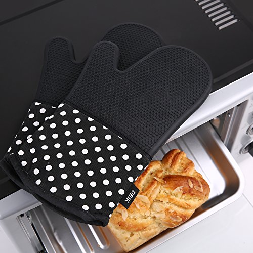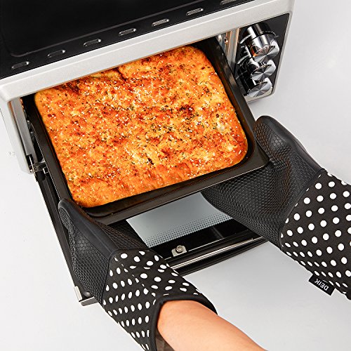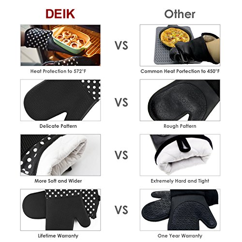 Deik Silicone Oven Mitts - Heat Resistant to 572 °F Kitchen Oven Gloves for Cooking, Baking, Barbebue Potholder, 1 Pair, Black