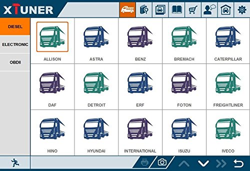-. Feature : XTUNER T1 has extensive vehicle coverage for heavy-duty trucks like Allison, Astra, Benz, Bremach, Caterpillar, DAF, Detroit, ERF, Foton, Freightliner, Hino, Hyundai, International, ISUZU, Iveco, Mack, MAN, Navistar, Diesel OBD, Renault, Scania, Toyota, UD, Volvo, Wabco; Support electronic system like Bendix, Cummins. / Complete function including DTC, DTC freeze Info, Live data, Actuation test and Special function;Support standard protocol J1939, J1708 and J1587. / XTUNER T1 support communication via USB or WIFI connection for the VCI; Software support update online for free. / Operation System: Windows XP, Windows 7, Windows 8, Windows 10, which allows for more stable performance, better compatibility and expandability. / The built-in overvoltage protection module is able to protect scanner and vehicle against accidental damage during checking; Work stably and smoothly in high and low temperature environment. Please feel free to contact us if you have any technical question, our engineer will support online.