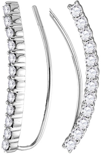 -. Title : 14kt White Gold Womens Round Diamond Curved Bowed Climber Earrings 1.00 Cttw