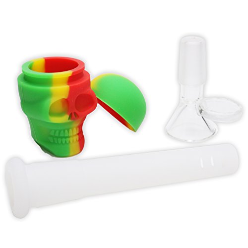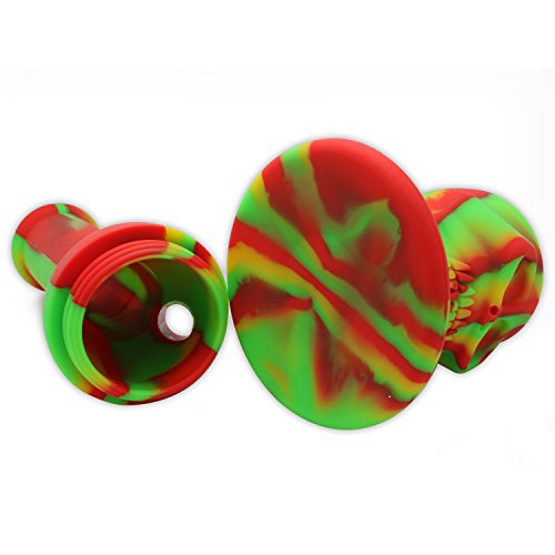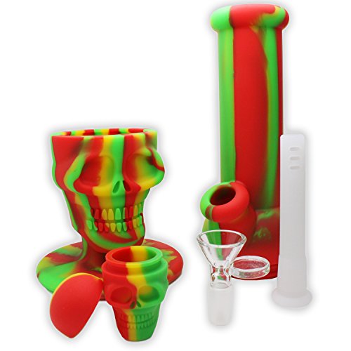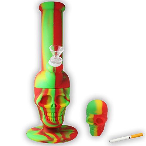 Silicone Water Rig (11” Skull) – Portable Detachable Unbreakable – Travel & Easy to clean (Rasta)