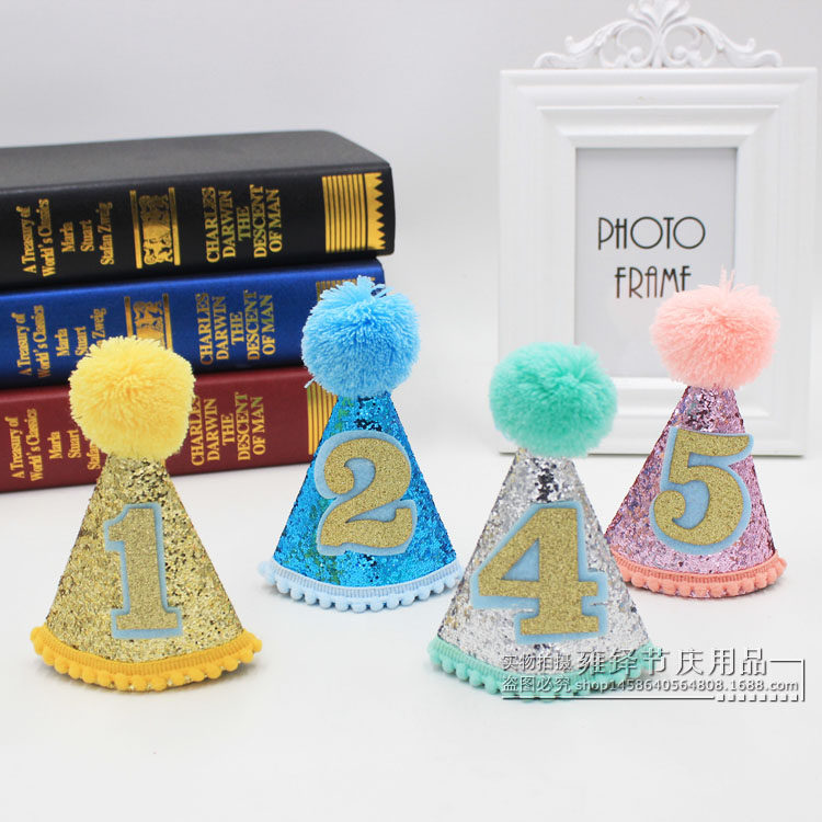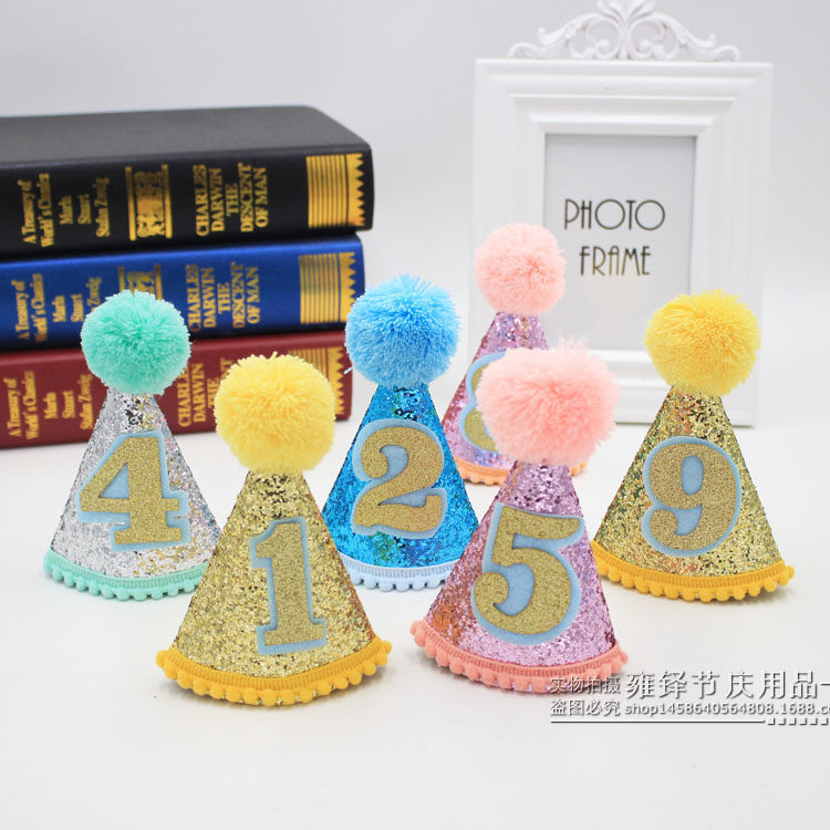 Name: Korean version of the digital birthday hatMaterial: Bright cloth + hair ballSize: 10 * 13CM (children can wear adult)Color: gold, pink, silver, lake blue (four optional)