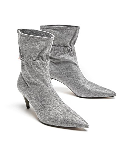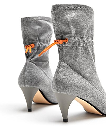 Product Description Grey mid-heel ankle boots. Wide leg with gathered detail and contrasting coloured bows at the top. Pointed toe. Heel height of 6 cm. / 2.3 inches Official brand size equivalence for Women Shoes. Size 35 | USA 5 ? ?|?UK 2 Size 36 | USA 6 ? ?|?UK 3? Size 37 | USA 6.5 |?UK 4? Size 38 | USA 7.5 |?UK 5? Size 39 | USA 8 ? ?|?UK 6 Size 40 | USA 9 ? ?|?UK 7? Size 41 | USA 10 ?|?UK 8? Size 42 | USA 11 ?|?UK 9? Size 43 | USA 12 ?|?UK 10 0