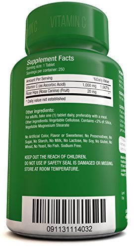 -. Binding : Health and Beauty -. Brand : PacificCoast NutriLabs -. EAN : 0091131114032 -. Feature : WITH ROSE HIPS: Our specially formulated Vitamin C has been combined with rose hips, a natural source of Vitamin C, to support the reduction of free radicals and promote a healthy immune system. / PURE VITAMIN C: Our all-natural formula has NO artificial color, flavor or sweetner, NO soy, NO gluten, NO preservatives, NO sugar, NO milk, NO lactose, NO wheat, NO yeast, NO fish & is Sodium free. / EASY TO SWALLOW: While many Vitamin C supplements require you to take several large pills, our small tablet shape makes them easy to swallow. And, with each tablet delivering 1000mg, 1 is enough. / HIGH POTENCY: Many studies have proven the benefits of Vitamin C. The majority of these studies had their subjects take 500-1000mg a day of Vitamin C. Thus, our high potency tablets deliver 1000mg. / BONUS FREE EBOOK: Order now to get our new eBook, The Vitamin C Connection, a $14.99 value, absolutely free. This short read will make an immediate, impactful difference in your Vitamin C regimen! -. Label : PacificCoast NutriLabs -. Manufacturer : PacificCoast NutriLabs -. MPN : 91131114032 -. PackageQuantity : 1 -. PartNumber : 91131114032 -. ProductGroup : Health and Beauty -. ProductTypeName : HEALTH_PERSONAL_CARE -. Publisher : PacificCoast NutriLabs -. Studio : PacificCoast NutriLabs -. Title : PacificCoast NutriLabs 1000mg Vitamin C With Rose Hips, No Sugars, No Soy, Free Ebook, 250 Tablets -. UPC : 091131114032