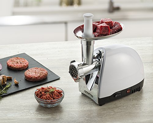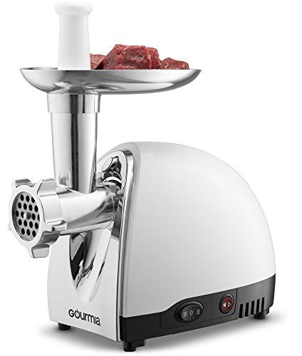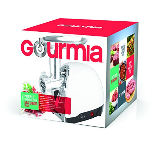 Gourmia GMG525 Meat Grinder with 3 Stainless Steel Grinding Plates 500 Watts ETL Approved 1000 Watts Maximum and Bonus Accessories Includes Sausage Horn & Free Recipe Book Included - 110/120V