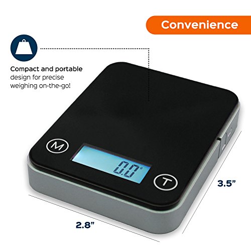 - Precise tare option and easy calibration. 100g calibration weights NOT included