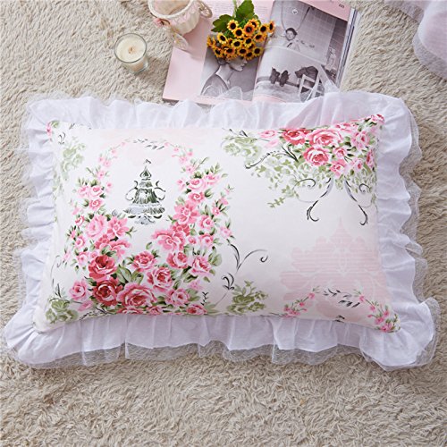 Best Bedding set 4- Piece Cotton Prined Pink Rose Floral Lace Duvet Cover Sets For Girls Pink Full