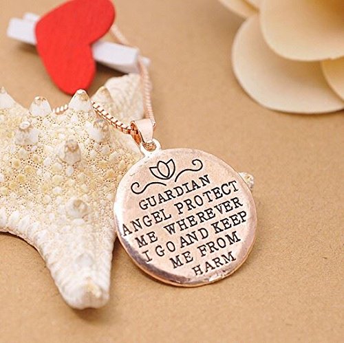 -. Title : Rose Gold-Tone 'Guardian Angel Protect Me Wherever I Go And Keep Me From Harm' Engraved Pendant Necklace 2.0 x 2.0cm With 18 Inch Chain Good Luck Charm