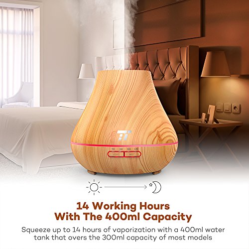 -. Binding : Health and Beauty -. Brand : TaoTronics -. EAN : 0635414198519 -. Feature : PP Construction For Safe Use: Rest reassured with an essential oil diffuser that's made of the same material of baby bottles; the polypropylene build won't get corroded by any essential oil. / 400ml Capacity For Up to 14 Hours Of Mist: Enjoy up to 14 hours of purified air with a 400ml water tank that's vaster than the 300ml capacity of most similar products. / Soother LED Light With The Built-in Cover: Sleep tight at night without any eye mask thanks to the built-in cover that filters the light for a more delicate illumination. / Timeless Wood Grain Design: Admire a finely detailed wood grain pattern that relaxes you by simply looking at it; ease stress at the rhythm of the pulsing 360° colorful LED. / Low Water Safeguard: Get extra peace of mind with the built-in water protection that'll shut the oil diffuser off when the water is low. -. IsAdultProduct : 0 -. Label : TaoTronics -. Manufacturer : TaoTronics -. Model : TT-AD004 -. MPN : TT-AD004 -. PackageQuantity : 1 -. PartNumber : TT-AD004 -. ProductGroup : Health and Beauty -. ProductTypeName : HEALTH_PERSONAL_CARE -. Publisher : TaoTronics -. Studio : TaoTronics -. Title : TaoTronics Essential Oil Diffuser, TaoTronics 400ml Wood Grain Aroma Diffuser for Aromatherapy (Noiseless High & Low Mist Humidifier, 14 Hours Continuous Mist, PP Build, Low Water Protection) -. UPC : 635414198519