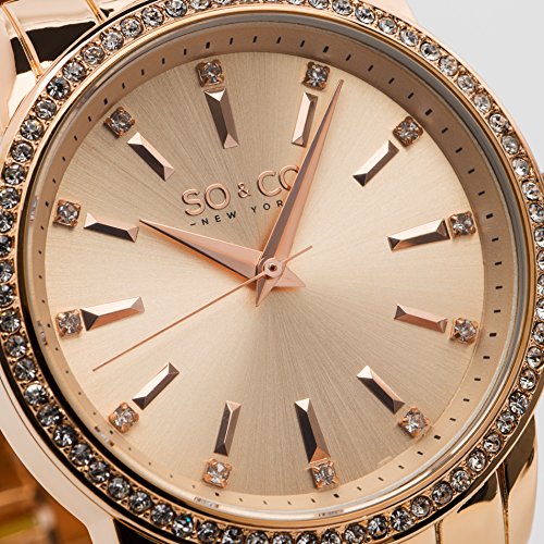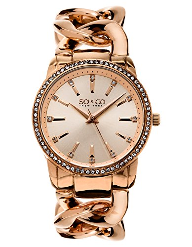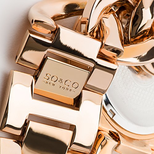 SO&CO New York Women's 5071.4 SoHo Quartz Crystal Accent 16K Rose-Tone Chain Link Bracelet Watch