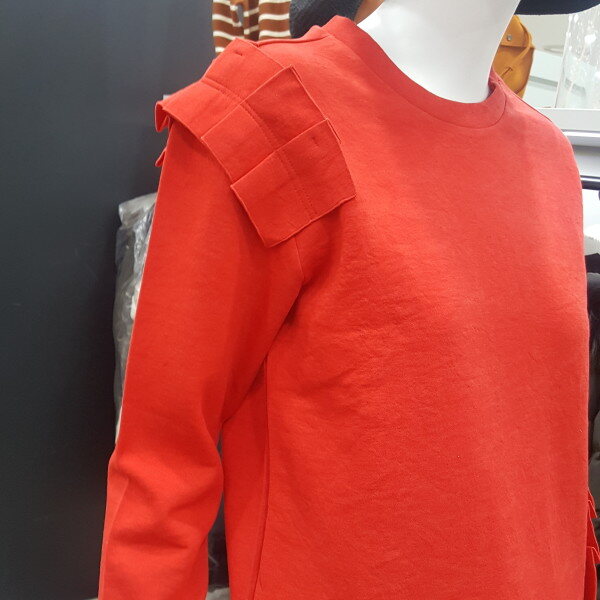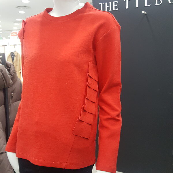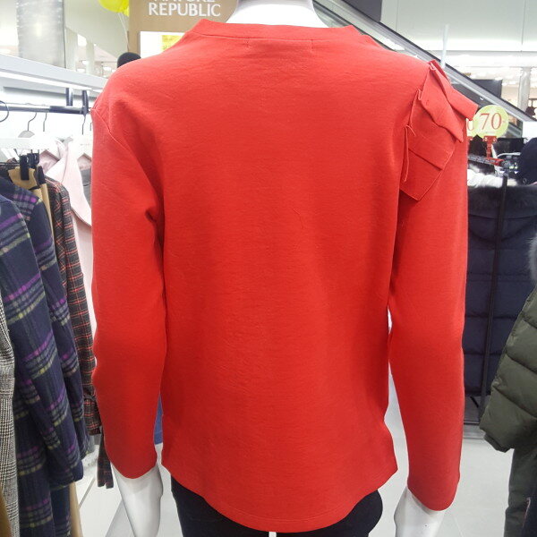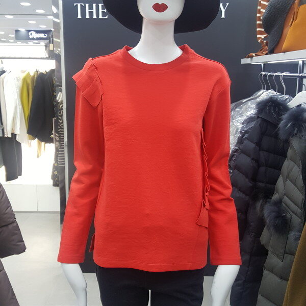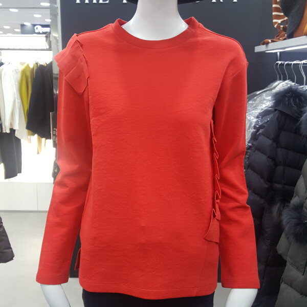 프릴장식이 있어 여성스러운 면티셔츠입니다 청바지나 스커트 다양한 디자인에 연출이 가능합니다.