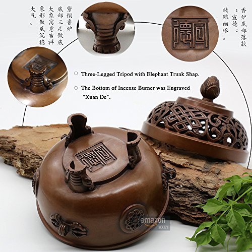 Hand-made Red Copper Lotus Censer- Incense Burner- Contain Incense Holder Three-Legged Net Weight:700g(Approx.) China Classical Style Traditional Technology
