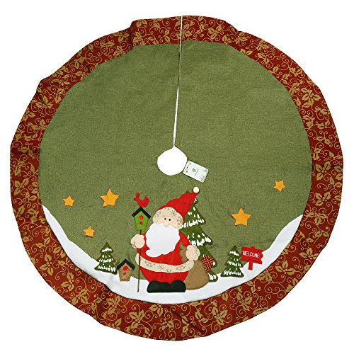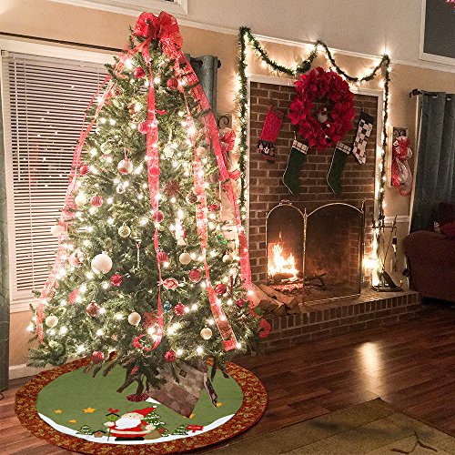 D-FANTIX CHRISTMAS DECORATIONS, 48-INCH LARGE SANTA CHRISTMAS TREE SKIRT WITH RED FLORAL RIM