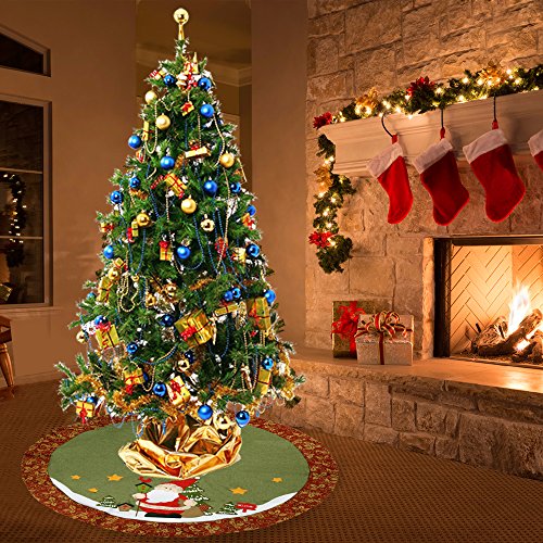 FROM D-FANTIX Looking for that perfect finishing touch for the center of your Christmas celebration? Our cute Santa Snowman Christmas Tree Skirt is of top quality and gives a simple, elegant and traditional look to any Christmas trees. One of our most popular Christmas Items! Christmas Tree Skirt. Our tree skirt features unique design and exquisite craft. This skirt measures approx 48". It is made from durable linen. It feels comfortable and soft Easy to set up. Easy to Clean and so festive.. Bring warmth and coziness this Christmas and surround your tree with this beautiful Christmas tree skirt. Specification Weight: 300 g Color: Red and Green Size : About 120 cm / 48 Inch Material : linen What's In the Box? 1 x D-FantiX Christmas Tree Skirt Care Instructions: spot clean