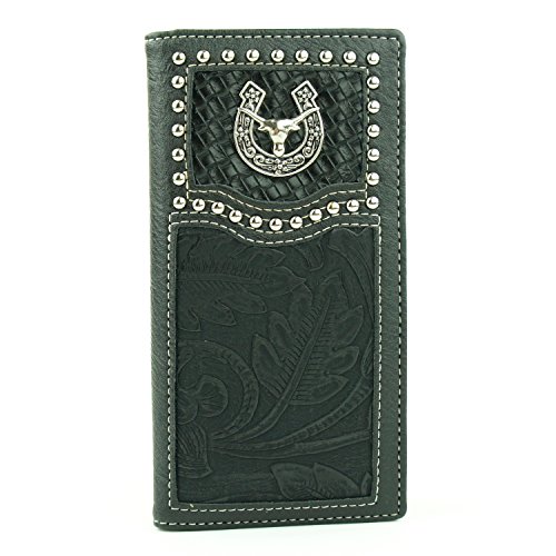 -. Binding : Apparel -. Brand : Rideaway -. Department : mens -. Feature : RIDE AWAY Longhorn Head Horseshoe Mens Wallet Western Long Bifold Check Book Style / 6 Credit cards slot, I.D slot, bills pockets and extra checkbook / Size : 7.00 X 3.50 X 0.50 INCH / High Quality Wallet / Perfect Gift for Western Lovers and Cowboys -. Model : W2-1 -. PackageQuantity : 1 -. ProductGroup : Apparel -. ProductTypeName : ACCESSORY -. Size : Large -. Title : RIDE AWAY Longhorn Head Horseshoe Mens Wallet Western Long Bifold Check Book Style