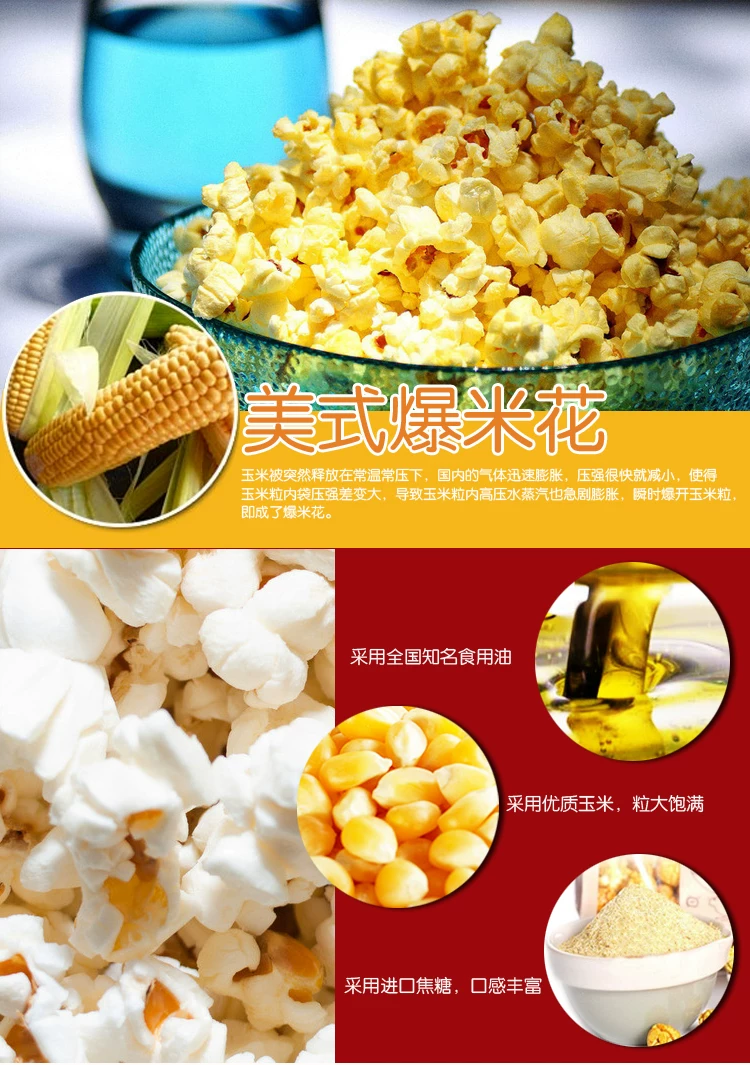 When the pot 4-5 atm pressure rises suddenly burst open flower pot cover, pot gas rapid expansion, the pressure is reduced quickly so that the pressure difference between the inside and outside grain becomes large, resulting in high-pressure steam rice also rapid expansion, instantaneous burst open grain, which became the popcorn