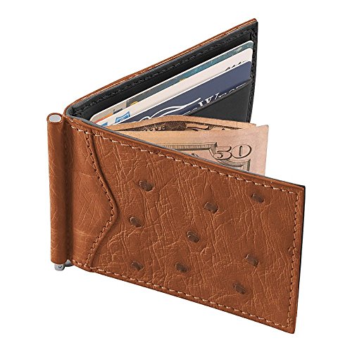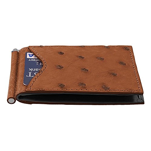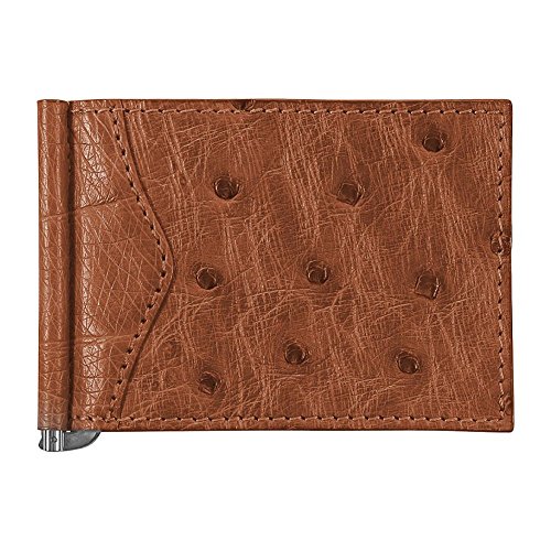 -. Title : Money Clip Wallet, Ostrich Leather, ID Holder, 3 CC Slots, Tan/Brown