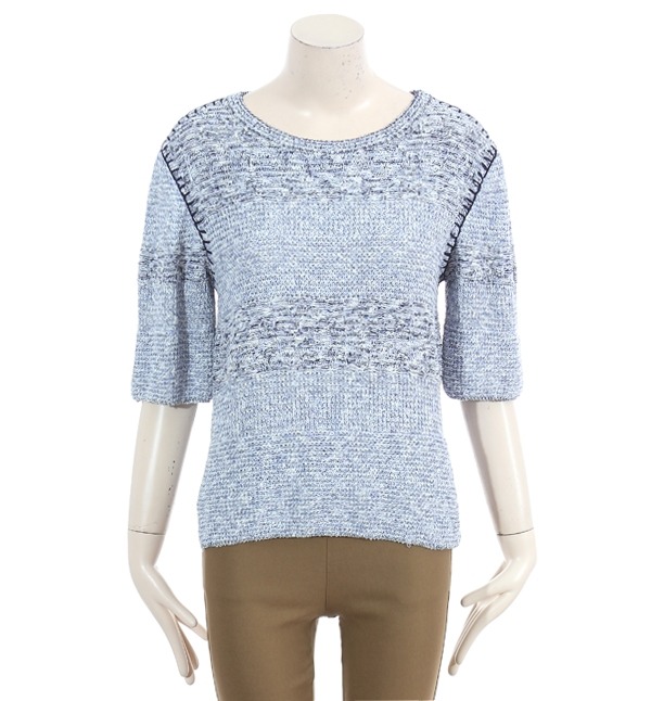 SISLEY, 심플한 디자인으로 깔끔한 분위기를 느낄수있는 보카시 라운드 니트 티셔츠입니다