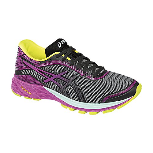 This women's shoe by Asics features a seamless construction, elastic lace up closure, discrete eyelets and rearfoot and forefoot gel cushioning systems