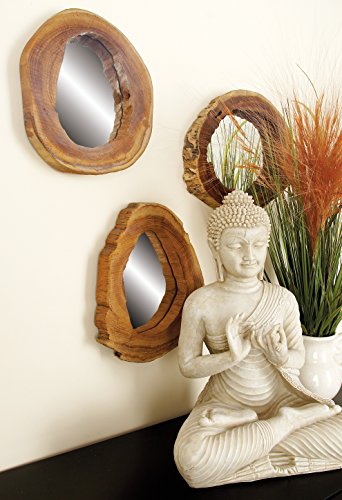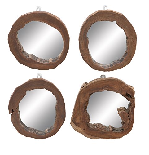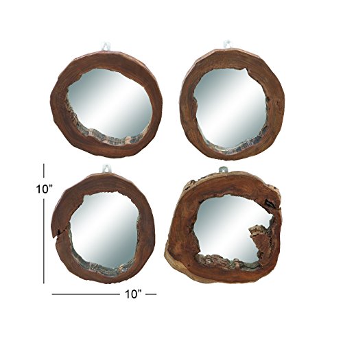 Deco 79 Teak Wood Mirror, 10 by 10-Inch, Set of 4