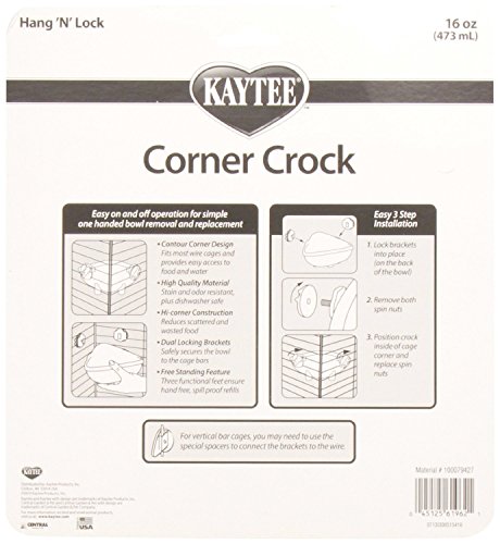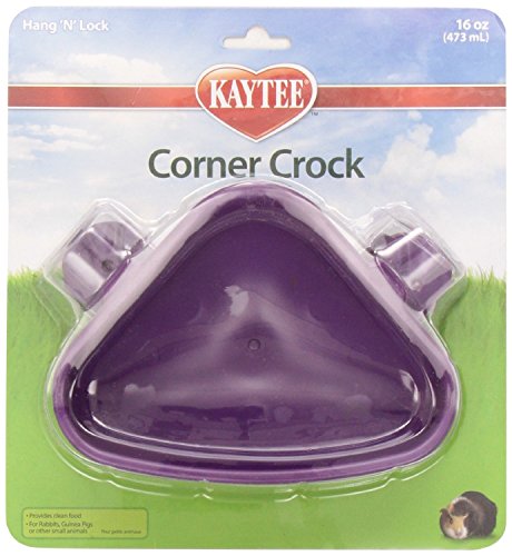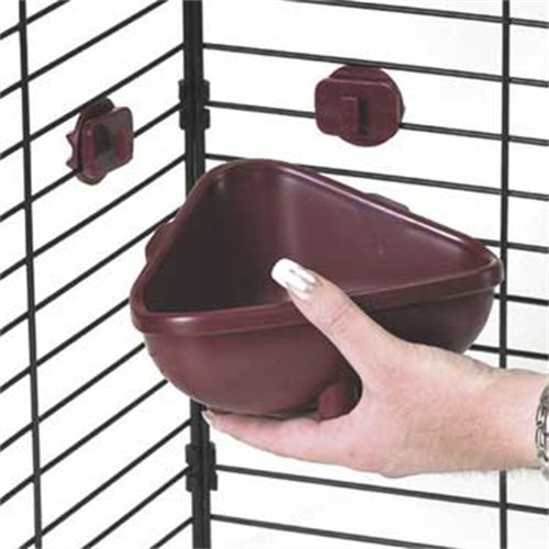 Hang-n-lock corner crock is the first food bowl specifically designed for small animals. It features two special brackets that securely fasten the bowl to any wire cage, yet simply detaches to make refilling fast and easy. Hang-n-lock corner crock's durable plastic construction makes it shatter proof, plus its unique corner design conserves precious cage space and keeps food from scattering. Hang-n-lock holds 16-ounce of your pets favorite food and is dishwasher safe. Available in four different colors. 0 |