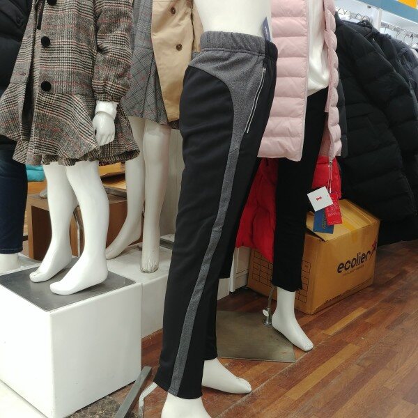 옆 라인의 긴 모양이 포인트입니다.슬림핏이며 기모가 살짝 들어가 있습니다.남학생 전용입니다.