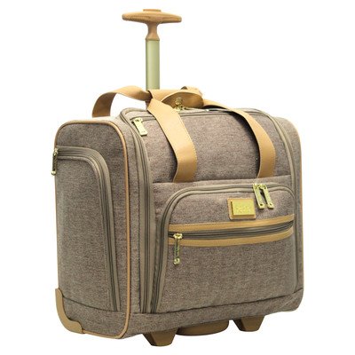 -. Brand : Nicole Miller -. Color : Maya Blue -. Department : womens -. Feature : Fits Right Under The Seal / Luxurious cotton tweed canvas / Telescopic Push Button Handle System / In Line Skate Wheels / Fully Lined Animal P.R.Int interior -. ProductGroup : Apparel -. ProductTypeName : LAGE -. Size : 15" -. Title : Nicole Miller Taylor Collection 15" Under Seat Bag