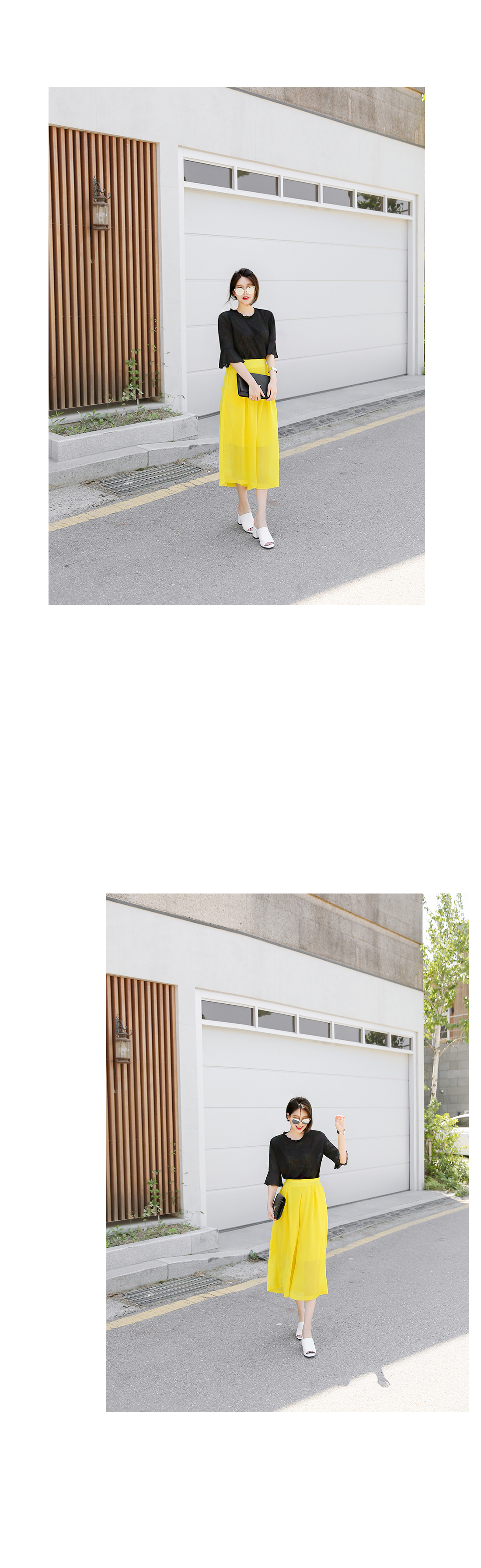 목선과 가깝게 떨어지는 라운드 네크라인으로,