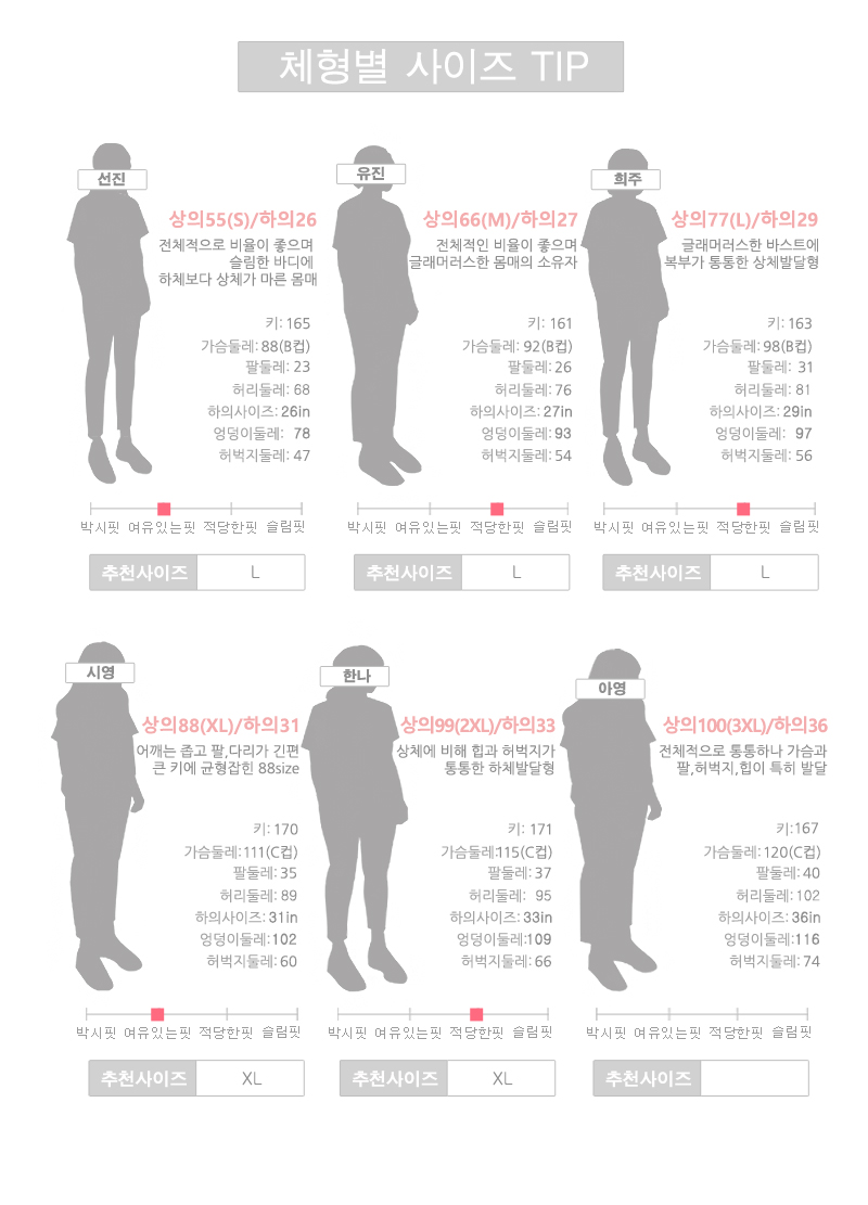 88에서 99까지 분들께는 XL를 추천해 드려요.자세한 사이즈는 상세 사이즈 표를 참고해 주세요^^
