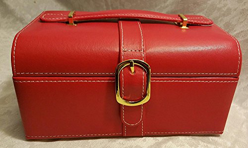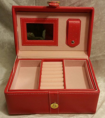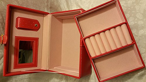 -. Binding : Kitchen -. Brand : Jaclyn Smith -. Department : unisex-adult -. EAN : 4715219170111 -. Feature : Durable Washable Easy Care Red PVC / Faux buckle magnetic closure / Mirror & Earring Holder / 1 Removable Tray with 2 Compartments & Ring Pads / Carry Handle for looks only, will not support the case and cannot be used to carry the case -. Label : Jaclyn Smith -. Manufacturer : Jaclyn Smith -. Model : 8180 -. MPN : 8180 -. PackageQuantity : 1 -. PartNumber : 8180 -. ProductGroup : Home -. ProductTypeName : HOME -. Publisher : Jaclyn Smith -. Studio : Jaclyn Smith -. Title : Jaclyn Smith Jewelry Box Case Storage Red Organizer Display Carrying Roll Watch Necklace Earring Chest Mirrored Mirror Ring Two-compartment interior Removable 4-section divided Fabric lining