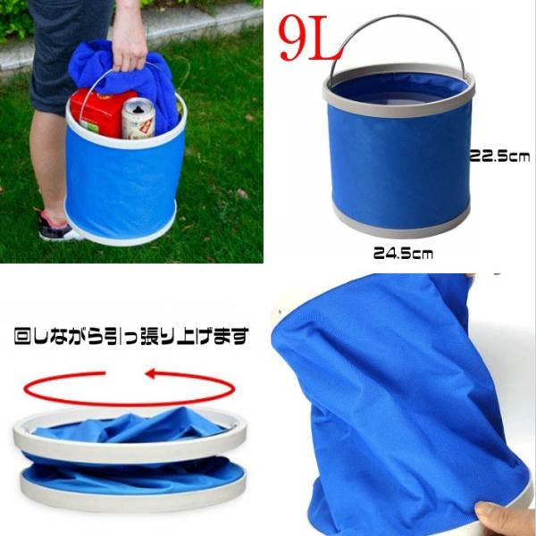 容量たっぷり9Lの折りたたみ式バケツです。場所をとらずスッキリ収納できます♪