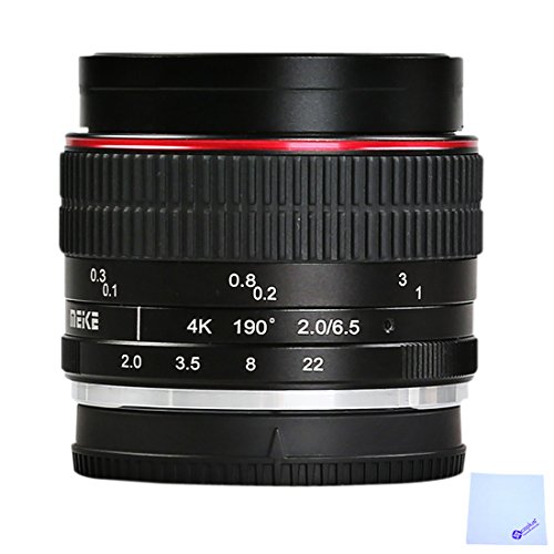 -. Feature : 6.5mm f/2.0 Meike optical lens is a manual focusing fisheye lens designed for full frame and APS frame. / This lens, with simple and compact size and sound portability, can represent diversiform images during fast or near photography. / Ultra-wide 190 degree diagonal field-of-view for APS-C size image formats / The aperture blades&multilayer nano coating / all metal frosted lens,all metal bayonet