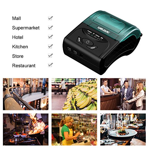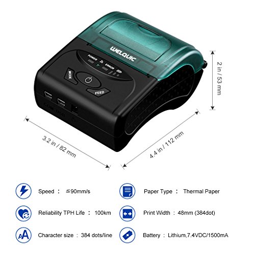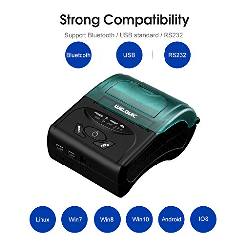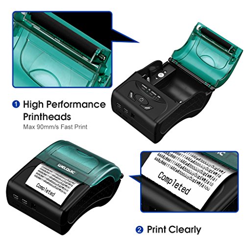 WELQUIC Portable Mini Wireless 58mm Bluetooth High Speed Direct Thermal Printer, Compatible with Android & IOS & Windows & Linux systems and ESC / POS Print Commands Set