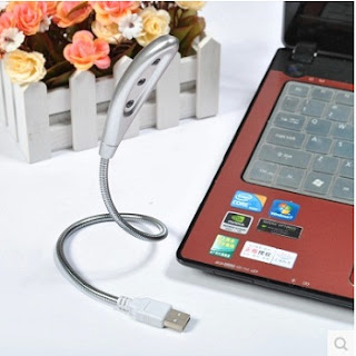 LAMPU LED USB Alat berupa lampu LED digunakan untuk penerangan, dan keyboard notebook lebih jika digunakan sebagai pengganti pencahayaan misalnya di dalam mobil saat berpergian. LED hanya bertenagakan port USB dan dilengkapi dengan dukungan logam yang fleksibel dan mudah digunakan