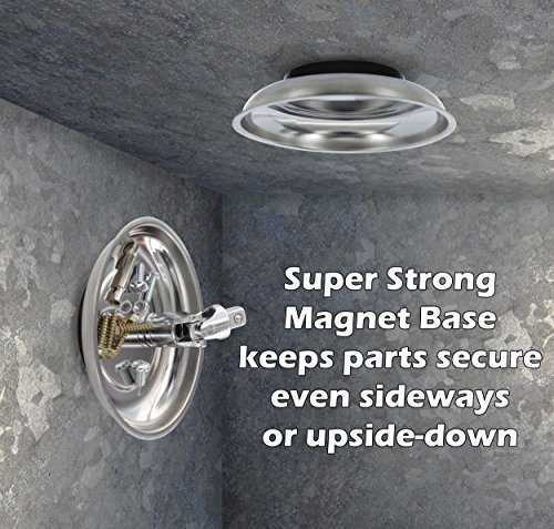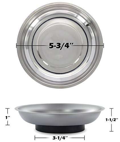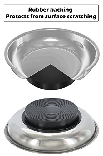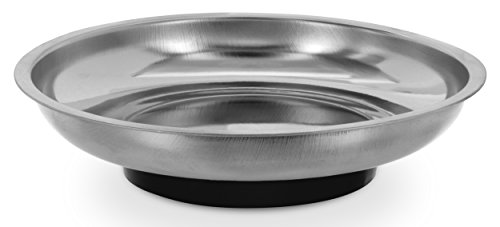 - The Drixet mechanic’s stainless steel large round magnetic tray adheres to ferrous metal, holding metal parts together for better organization, and features a rubber coating on the strong magnet to protect surfaces.