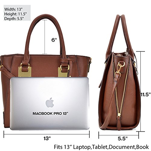 - ❤ PLENTY OF SPACE: This structured handbag is great size for laptop, small wallet, file, book, mouse, and cell phone power cord/charger combo. Carry it by its elegant top handles or go hands-free with the removable shoulder strap.
