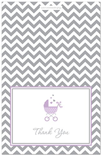 50 Cnt Lovely Purple Carriage Baby Shower Thank You Cards