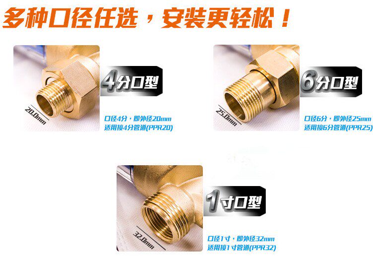 1寸:水管上标注DN25的既是1寸管(水管螺纹外径约32mm)
