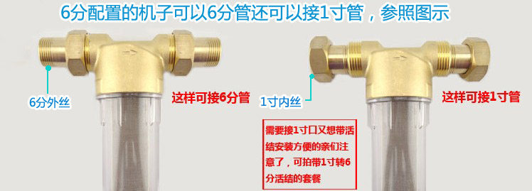 单机款2:主机1台+安装扳手1把+排污嘴+除垢滤芯1支(75元)(不带活接)←1寸口