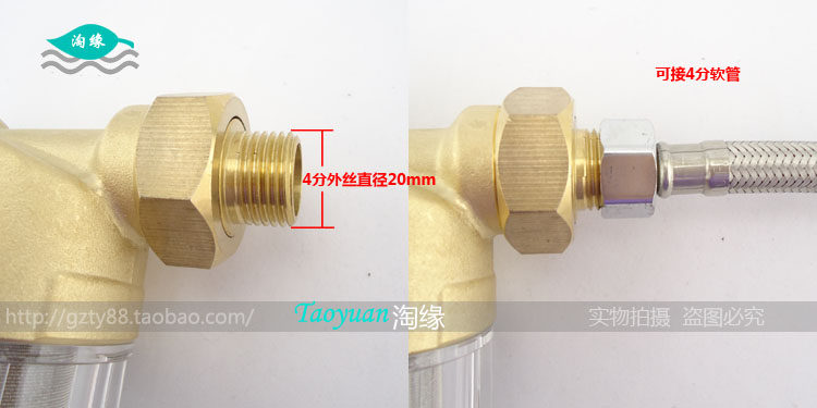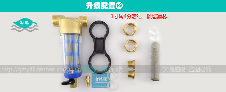 购买必看提示:此款前置过滤器是在不影响水压的前提下对用水作预处理和除垢,主要过滤颗粒性杂质和水藻虫卵,水浑浊等色素类的是不能过滤清澈的,并非精细过滤装置,要过滤水浑浊变清澈的,请购买本店的精细过滤机型。