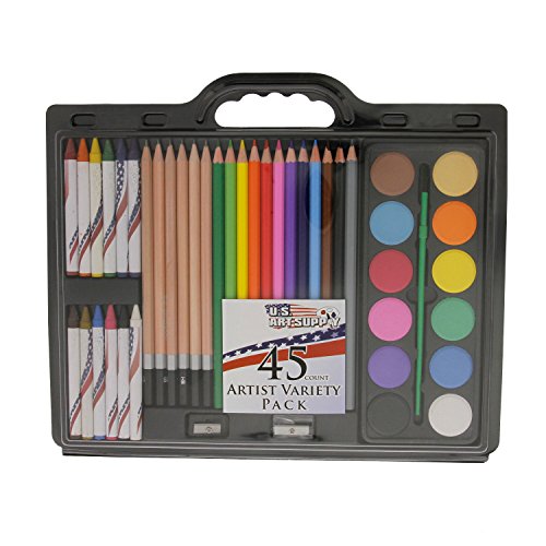 -. Binding : Office Product -. Brand : Us Art Supply -. Color : Multicolor -. EAN : 0848849020069 -. Feature : 12-Artist Grade Colored Pencils / 6-Crisp Line Graphite Pencils / 12-Pigmented Colored Crayons / 12-Watercolor Palette Colors in Dried Cakes with Painting Brush / 2-Pencil Sharpeners -. Label : US Art Supply -. Manufacturer : US Art Supply -. Model : PS-1245 -. MPN : PS-1245 -. PackageQuantity : 1 -. PartNumber : PS-1245 -. ProductGroup : Art and Craft Supply -. ProductTypeName : ART_SUPPLIES -. Publisher : US Art Supply -. Size : 45-Piece Set -. Studio : US Art Supply -. Title : US Art Supply® Brand 45 Piece Art Set with Water Colour Cakes * Now Includes a FREE Reusable Plastic Carry Case. -. UPC : 848849020069