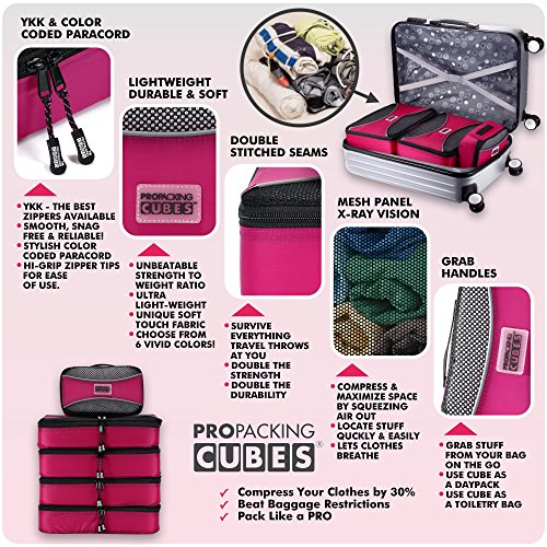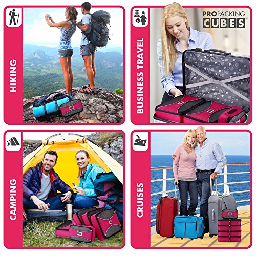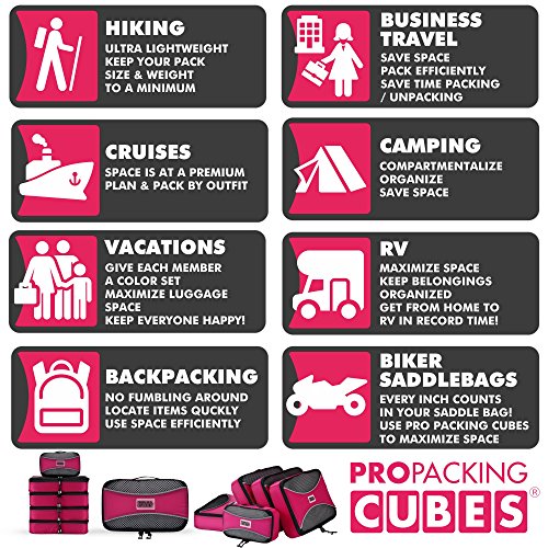 #1 Bestselling PRO PACKING CUBES - NOT ALL CUBES ARE MADE THE SAME! : IF YOU'RE LOOKING FOR THE ABSOLUTE HANDS DOWN BEST QUALITY ULTRA LIGHT-WEIGHT CUBES, AT A FRACTION OF THE PRICE OF ANYTHING COMPARABLE THESE ARE THE CUBES FOR YOU. Quickly organize your bag. Breeze through airport security. Multiple stops? Pack and unpack in a flash! This is the 'go anywhere' 4 piece value set. There is a reason these cubes get the best reviews and are the best gift for frequent travelers