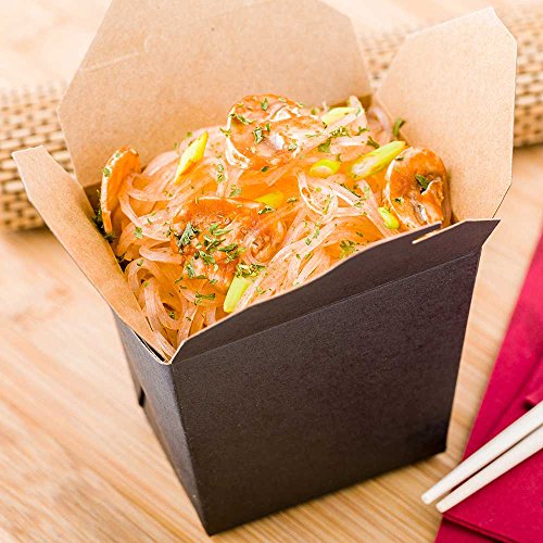 16-OZ Square Noodle Take Out Food Container: Perfect for Take Out Restaurants – Black with Kraft Brown Interior – Easy Fold and Close – Disposable and Recyclable – 200 CT – Restaurantware