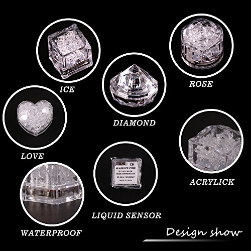 Multicolor colorful LED Ice Cube Light 24 Pack Liquid Sensor Submersible Glow Light Up For Wedding Bar Club Party Decoration (Flower,Heart,Diamond and Cube Shape)