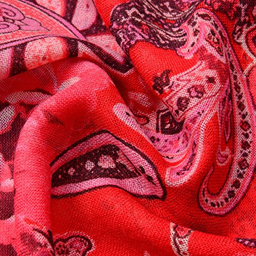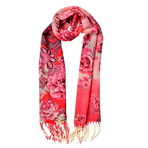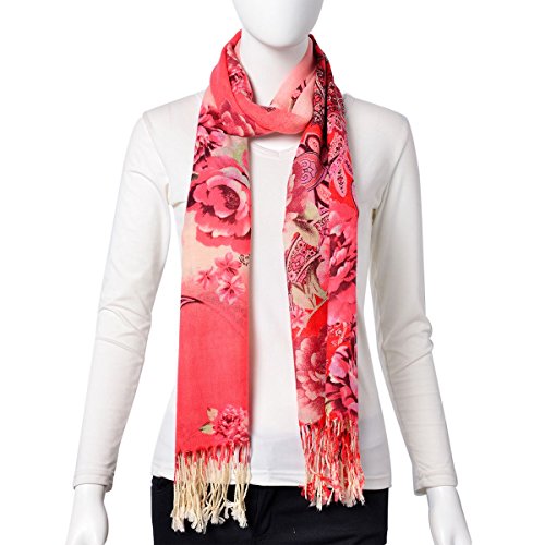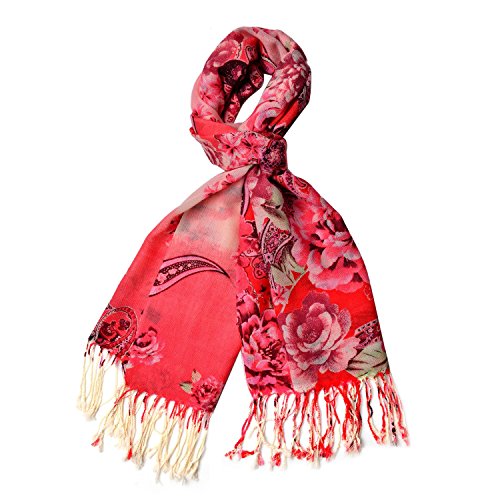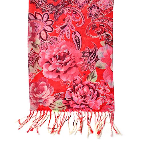 Product Description This red flower pattern 100% wool scarf with braided tassles will give you a chic and colorful look. Pair it with your favorite outfit and step out in style. 0