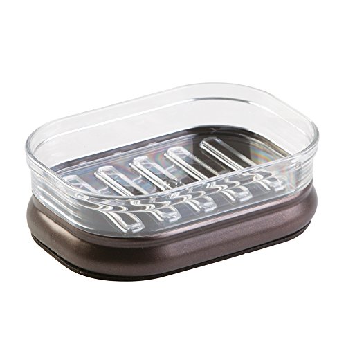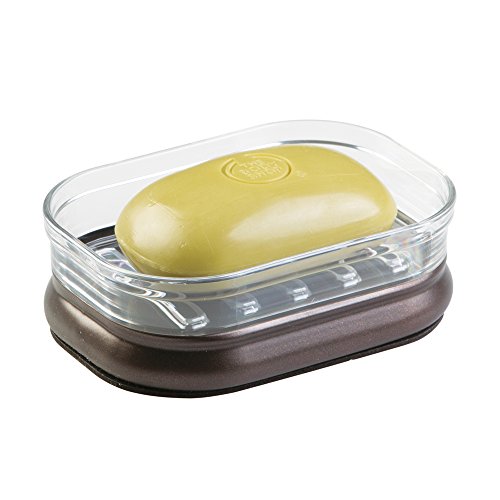 InterDesign Bar Soap Dish Holder for Bathroom Vanities, Kitchen Sink - Clear/Bronze