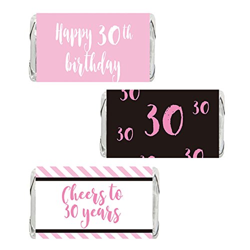Pink 30th Birthday Miniatures Candy Bar Wrapper Stickers, Party Favor Labels, 54 Count