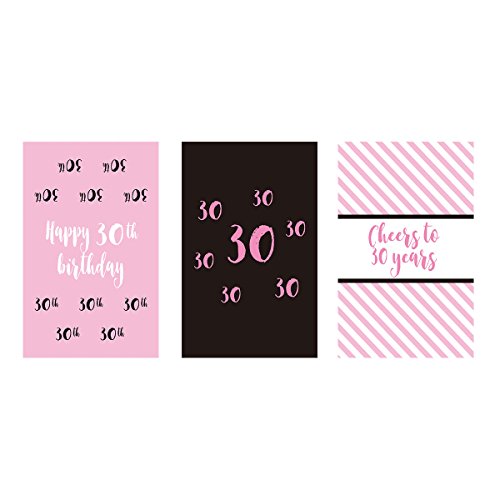 - Pink, black and white design, great for 30th birthday party decorations, favors.