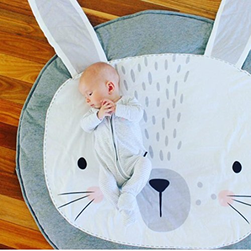 -. Feature : Type: Playmat Blanket / Material: Cotton Blend / Size: Approx 95cm/37.4 Inch; Suitable for ages in children (0-3 years old) / Designed: cat,fox,lion,smilling etc cartoon shapes design,makeing it more intweresting.it is also a good gift for Early baby development playmats / Pay attention: this mat is for summer, not thick style. If you mind, please be cautiou to order