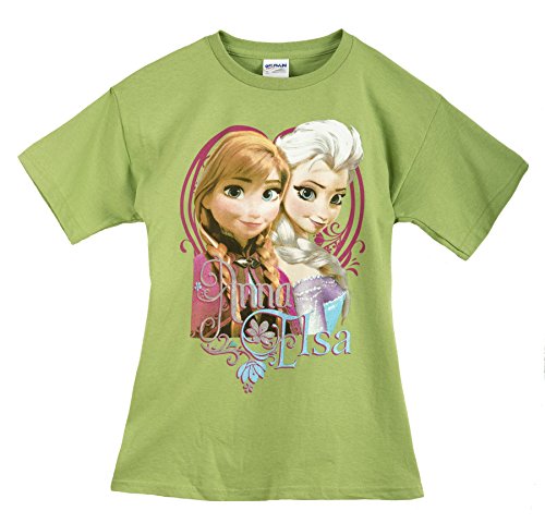 This first quality 100% Cotton tee shirt features images of Anna and Elsa from the hit movie Frozen. The screen prints vivid and feature glitter accents your little girls will love. Frozen tee shirts are in high demand. Ours are 100% authentic and manufactured in the United States by the authorized Disney licensee.